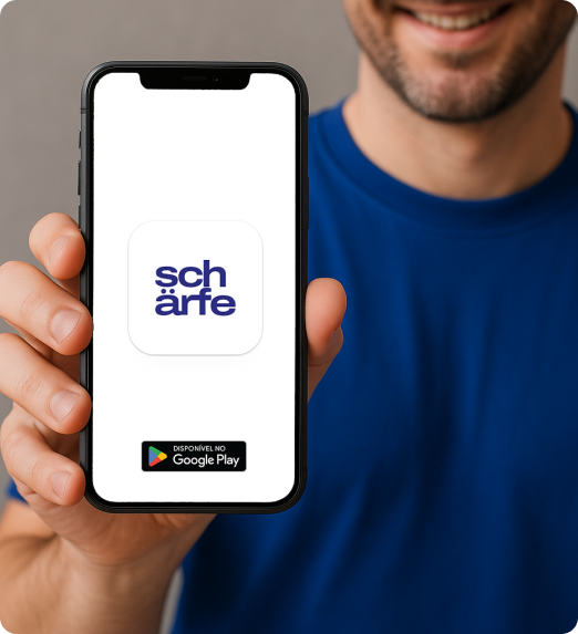 Você fala. A Schärfe escuta, entende e organiza tudo.